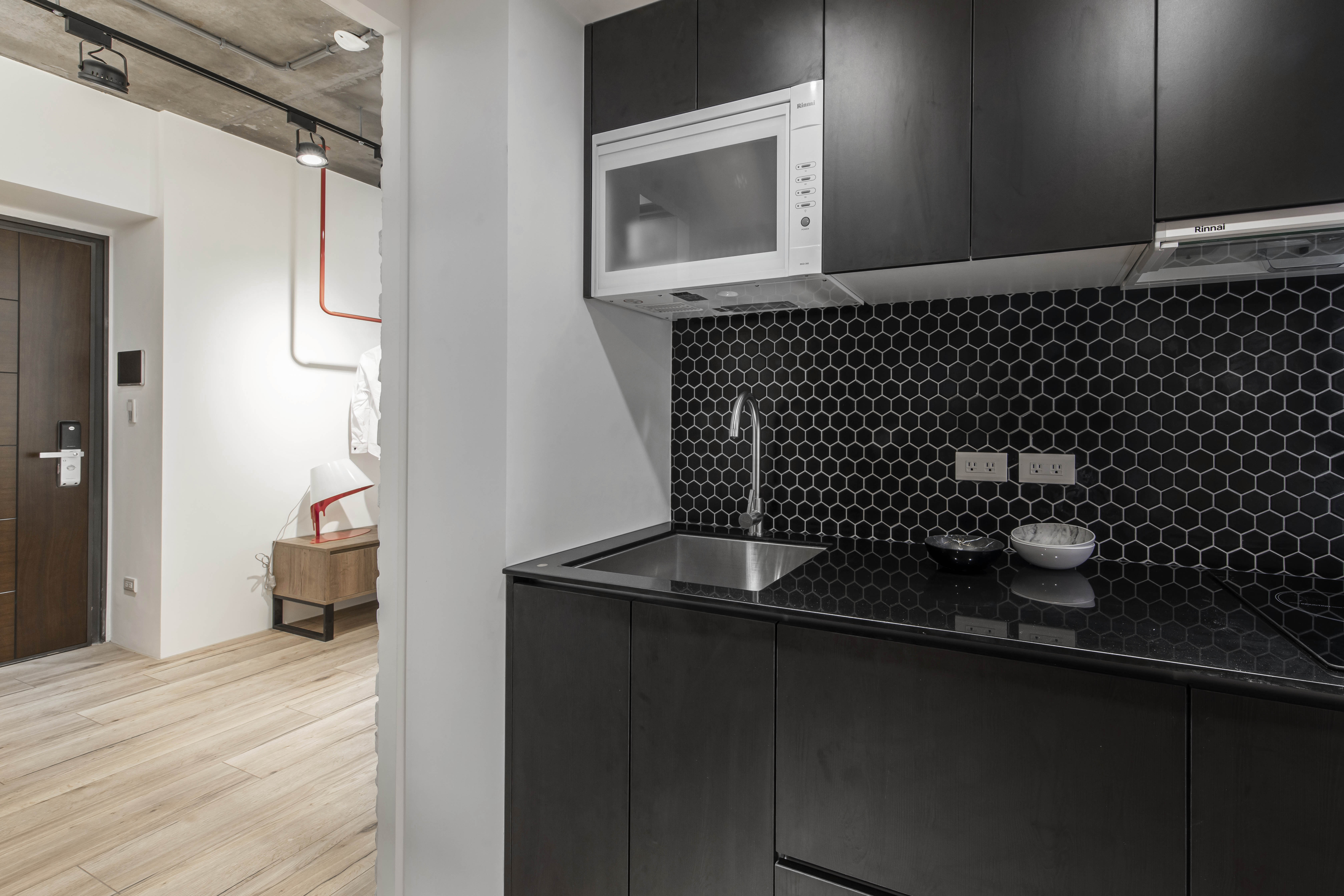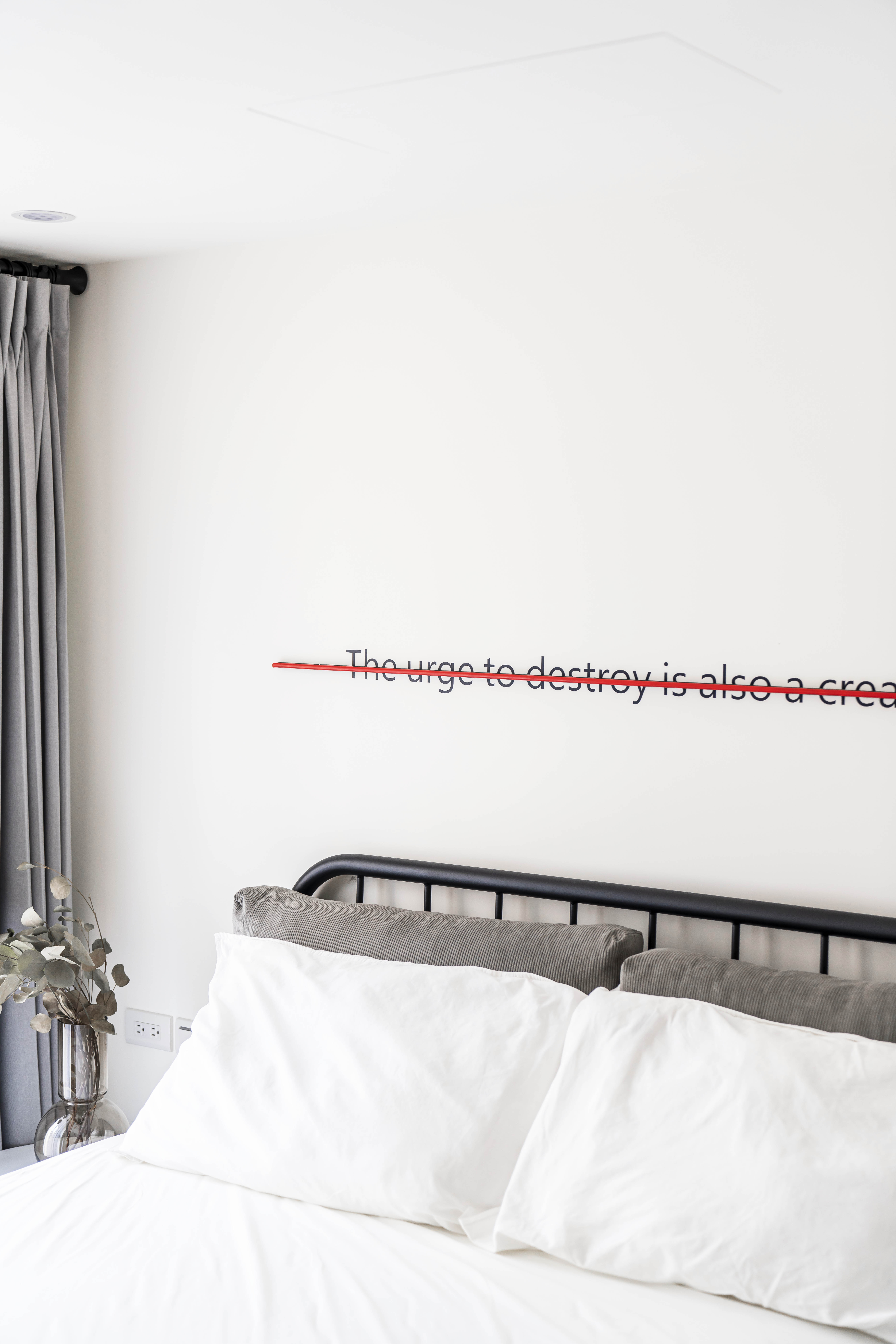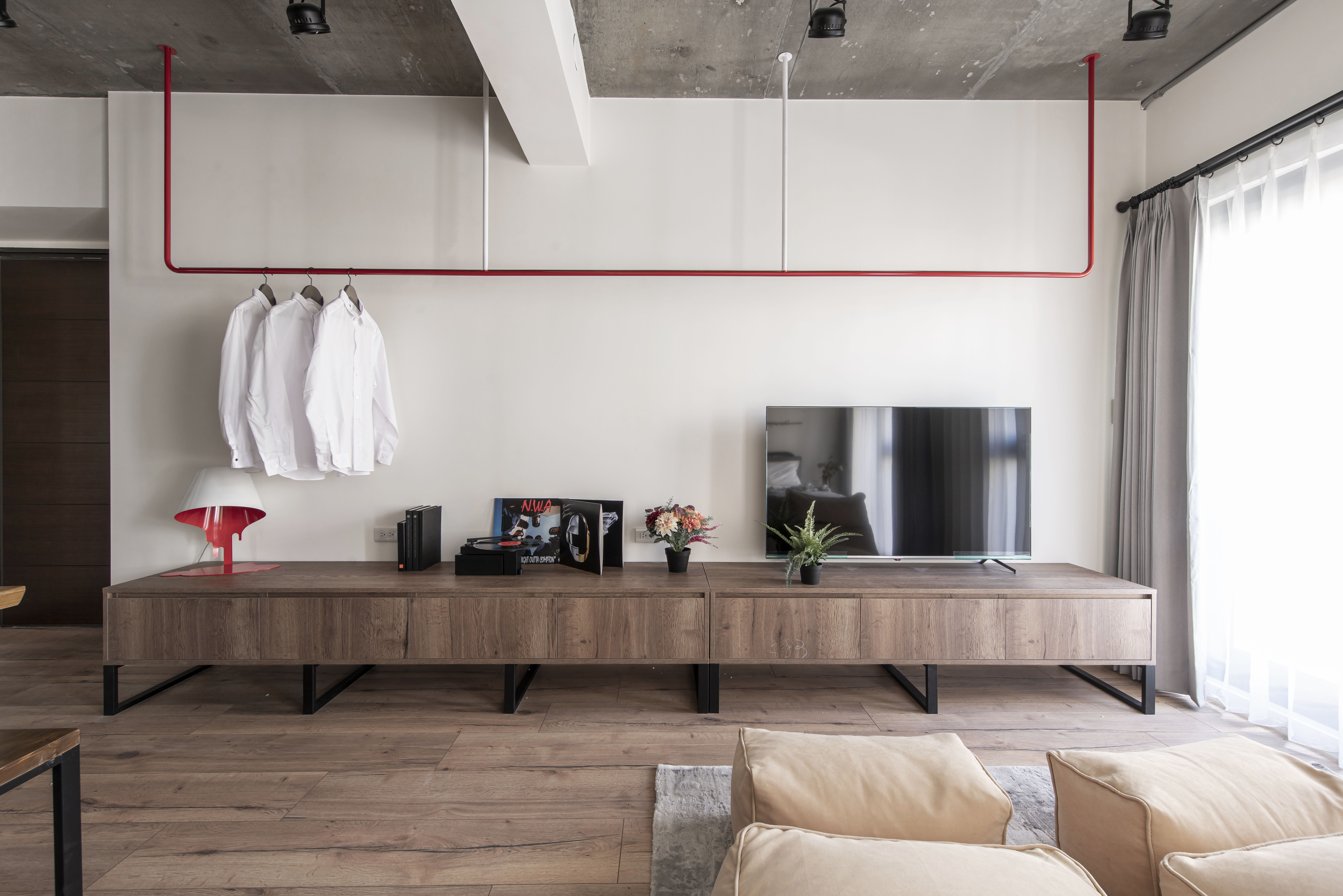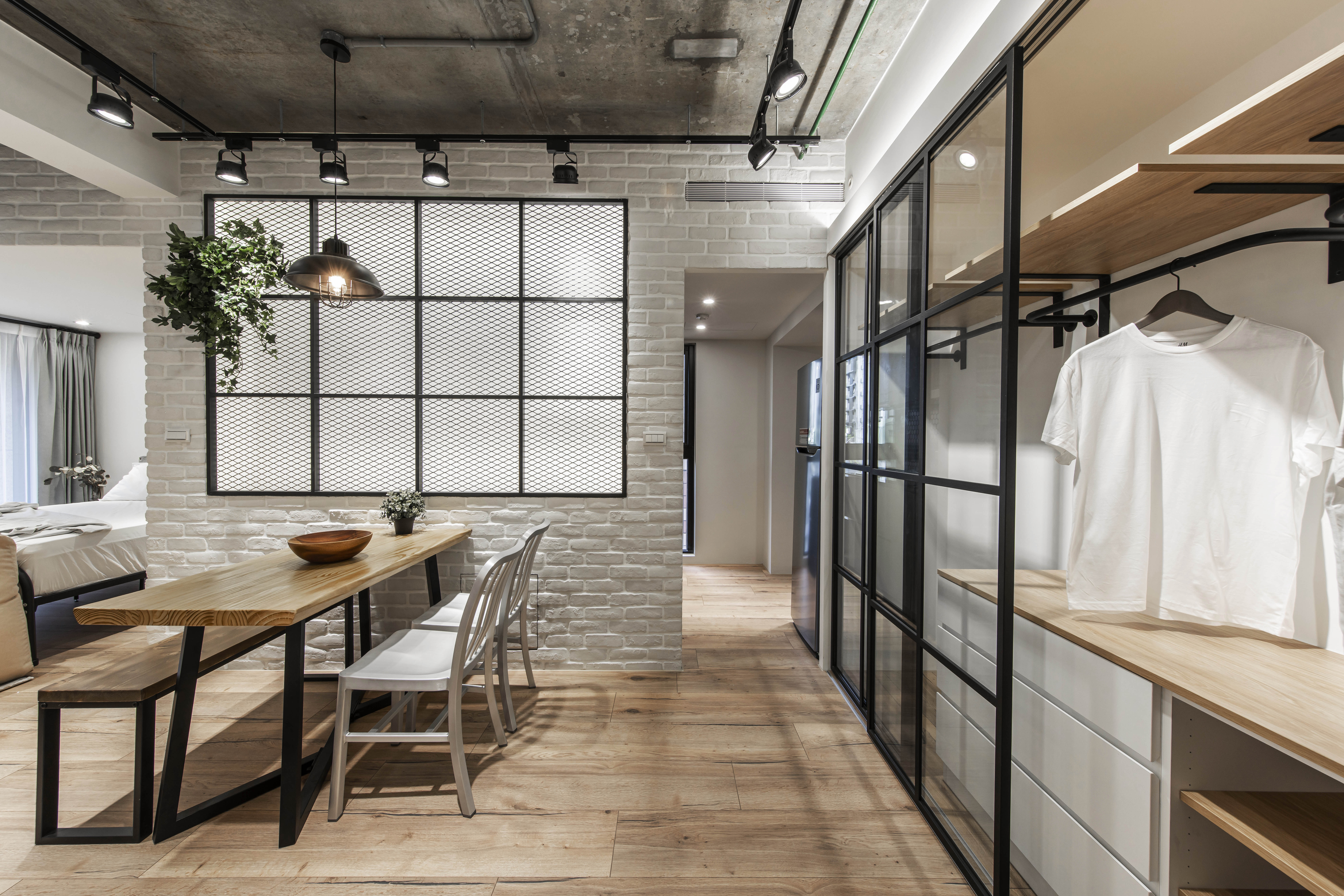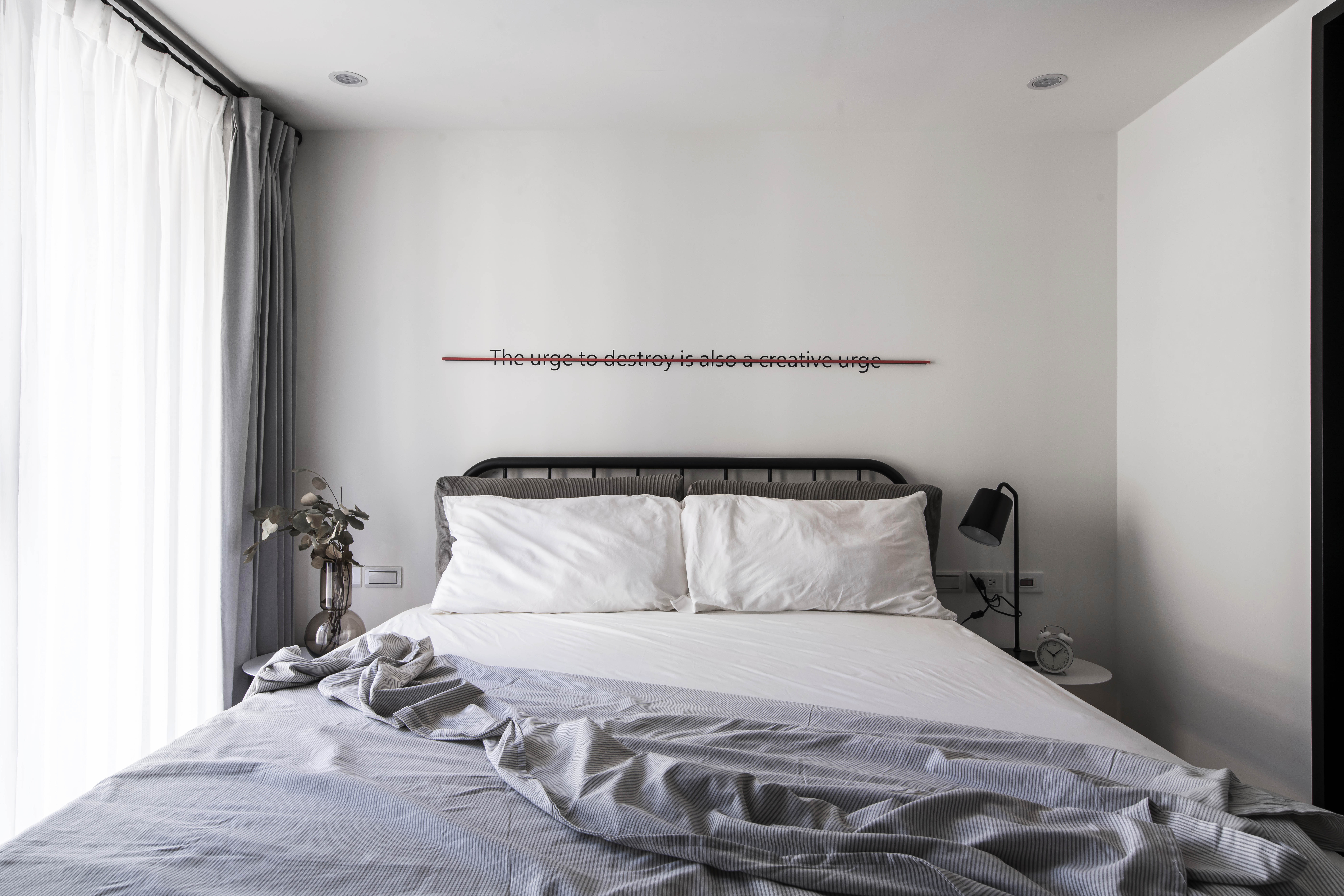 空間的元素以Banksy作畫的街頭出發點,運用著溫潤的根本和堅毅的造型,加入工業風並予以混和出一種新的輪廓,投入些許色彩增添趣味性,搭配幽默的文字帶出藝術家本身的詼諧創意,建構出別具意義的休憩環境