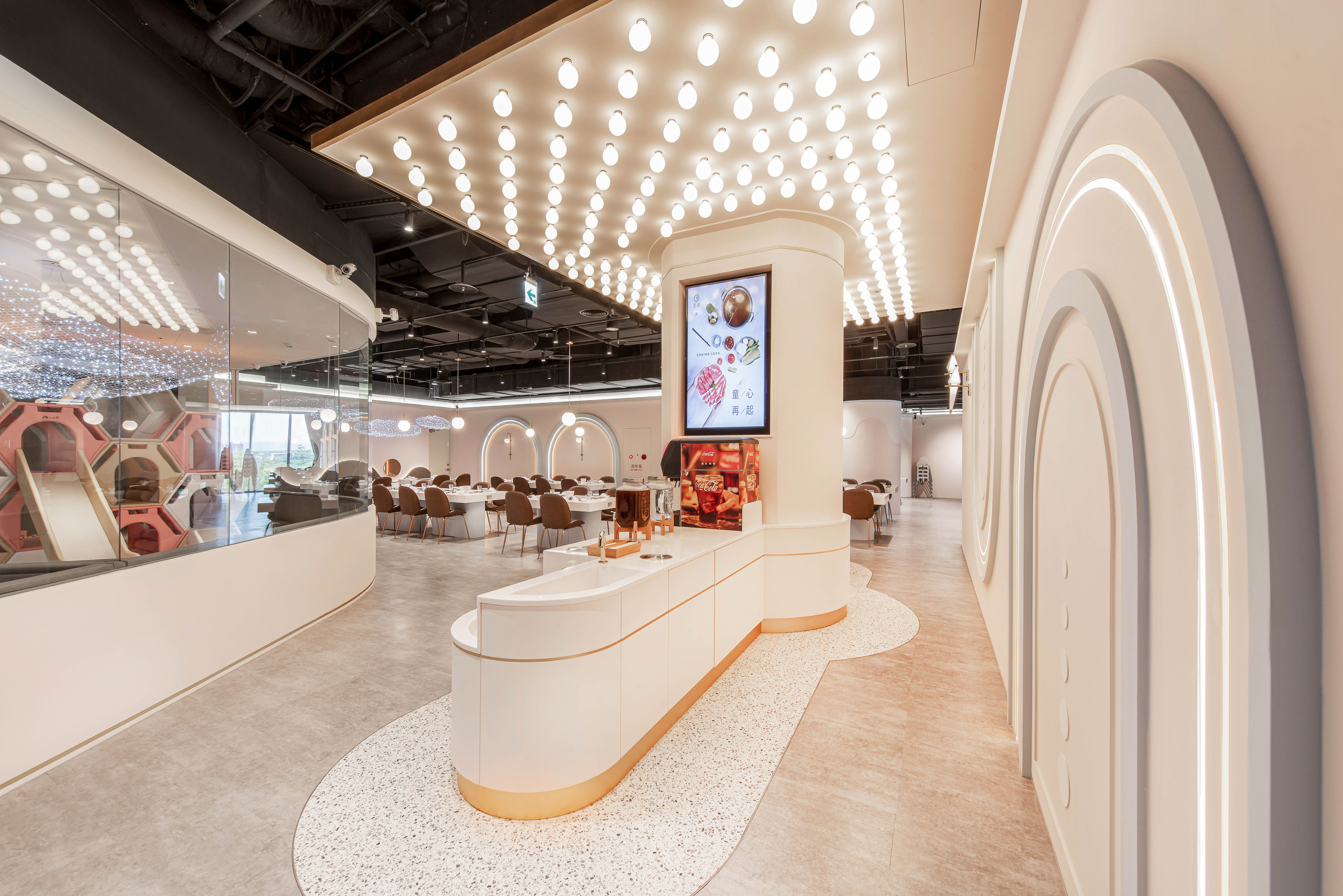 天氣轉涼最好的朋友就是熱呼呼又暖心的火鍋啦!除了穿上厚厚的大衣,也要暖暖自己的胃,吃火鍋絕對是拉上一家老小、三五好友聚餐的好選擇,一起取暖的同時也替彼此的感情加溫⠀本案彷彿是聽見家長們的吶喊,跳脫一般餐廳的動線規劃及設計構思,以獨特的空間配置,打造大人、小孩都喜愛的飲食空間。