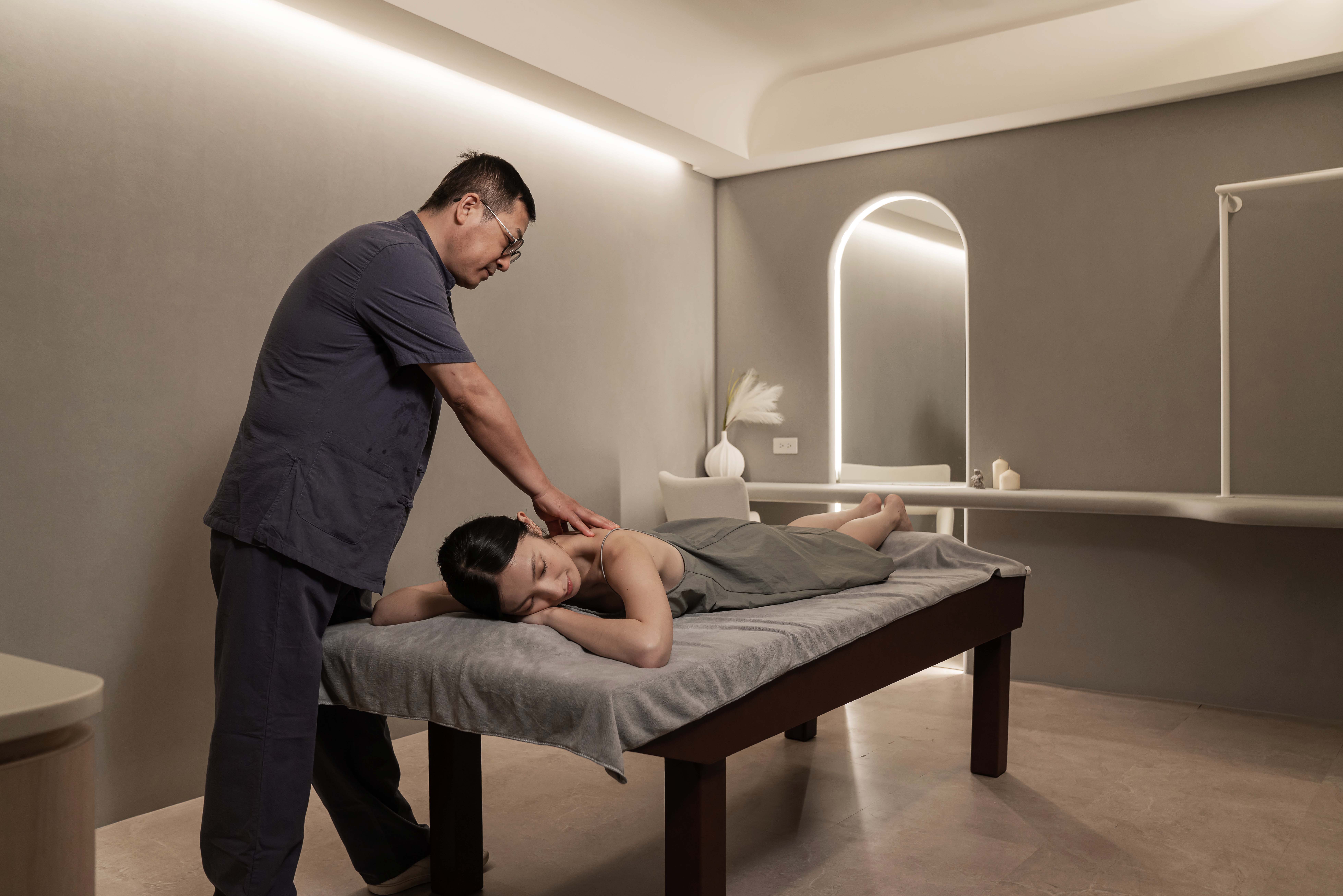 中。空間中瀰漫著極簡之美的深遠魅力,為您帶來一場充滿詩意和靜謐的按摩之旅。