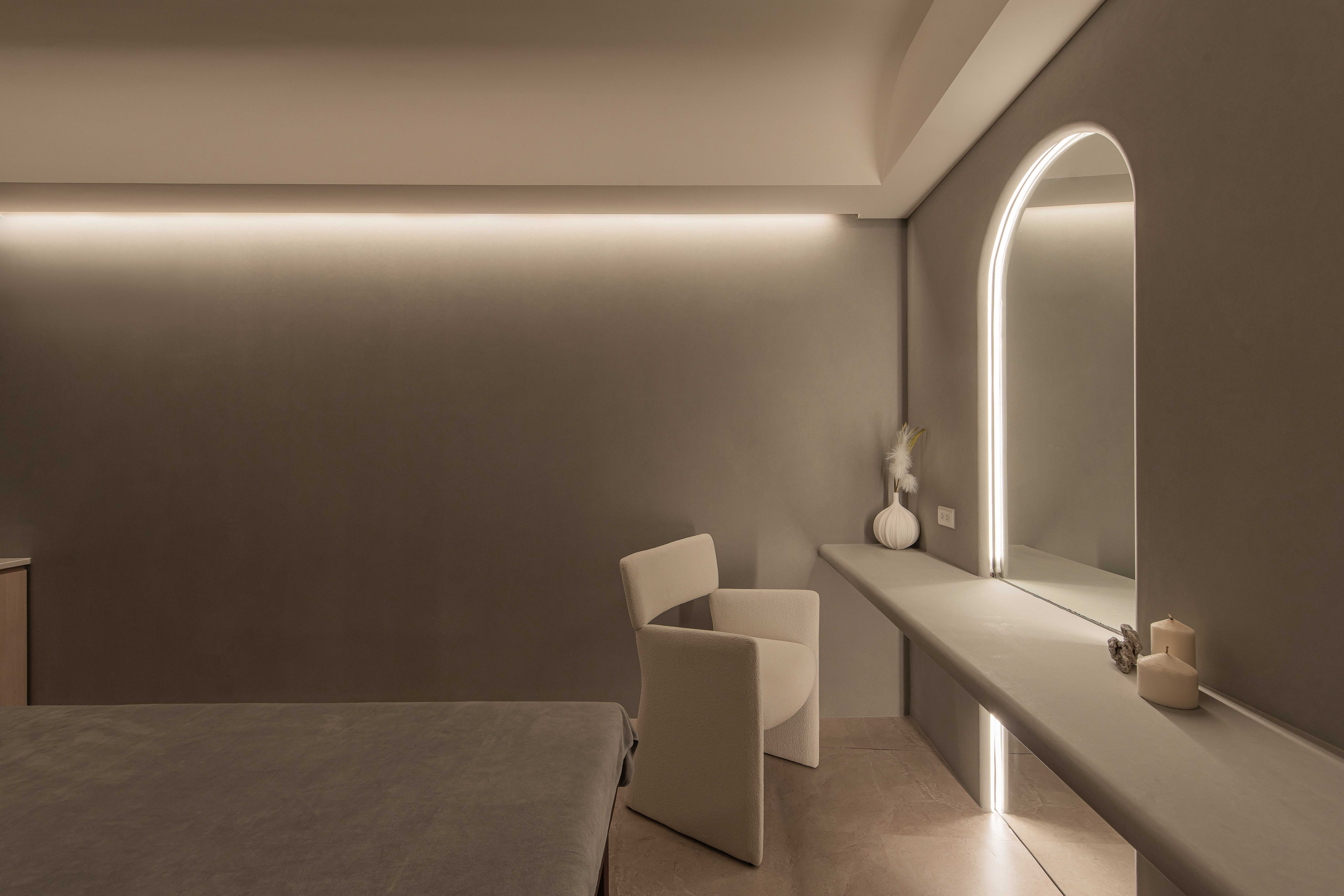 整體室內佈局和裝潢突顯了極簡主義和侘寂美學的完美結合,使空間為一處不僅